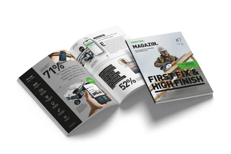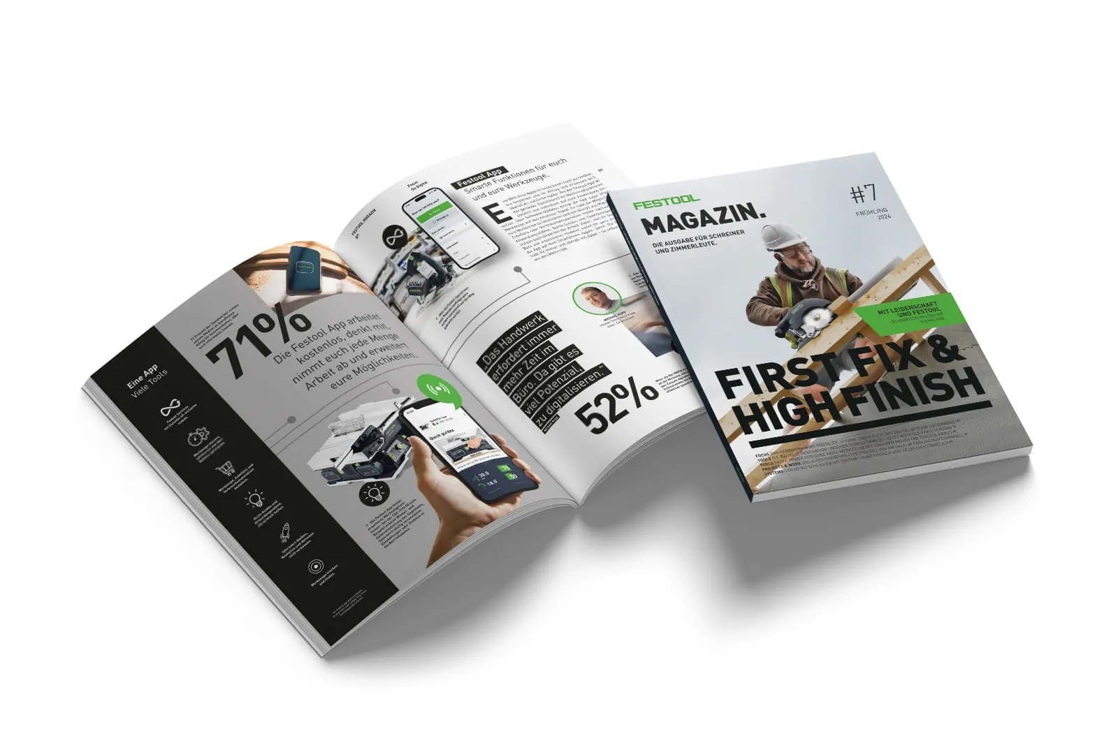 De nieuwe Festool klantmagazines 2026 voor schilders, timmerlieden en meubelmakers laten zien hoe moderne vakmensen tegenwoordig succesvol werken: met krachtige accugereedschappen, geavanceerde systeemoplossingen en slimme digitale services. In beide uitgaven kunt u praktische inhoud verwachten over de nieuwe Tabless accu's, de volgende generatie van de DOMINO familie, efficiënte oplossingen voor stofvrij werken en inspirerende vakprojecten uit de praktijk. Waardevolle expertise voor de werkplaats en de bouwplaats - compact gebundeld in het magazine.