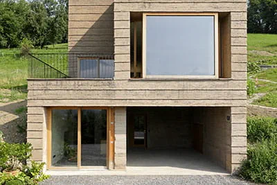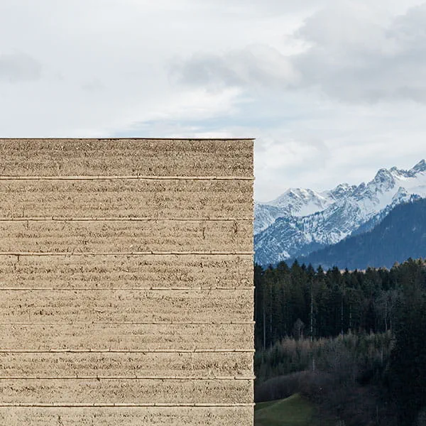 Als je op het materiaal afgestemd plant, is bijna alles mogelijk. Het is meer de vraag hoe je zo economisch mogelijk kunt bouwen met stampleem. Toen we het huis bouwden, werd natuurlijk veel werk met de hand gedaan, wat uiteindelijk ongeveer 30 procent meer werktijd betekende. In 2012 hebben we bij de bouw van het Ricola-kruidencentrum in Laufen bij Basel voor de eerste keer op grote schaal gewerkt met kant-en-klare stampleemelementen. Voor de Alnatura Campus in Darmstadt, het grootste kantoorgebouw van leem van heel Europa, hebben we een machine ontwikkeld om ter plaatse stampleemelementen te produceren. Hier in Schlins bouwen we momenteel een nieuwe fabriekshal waarin in de toekomst stampleemproducten machinaal worden geproduceerd.