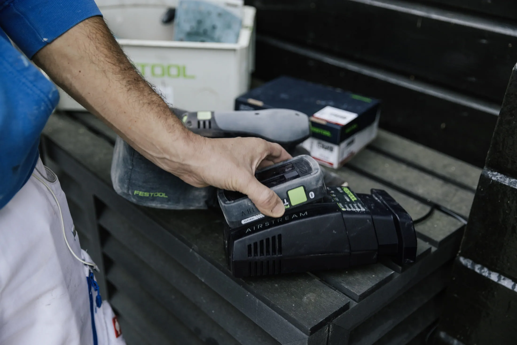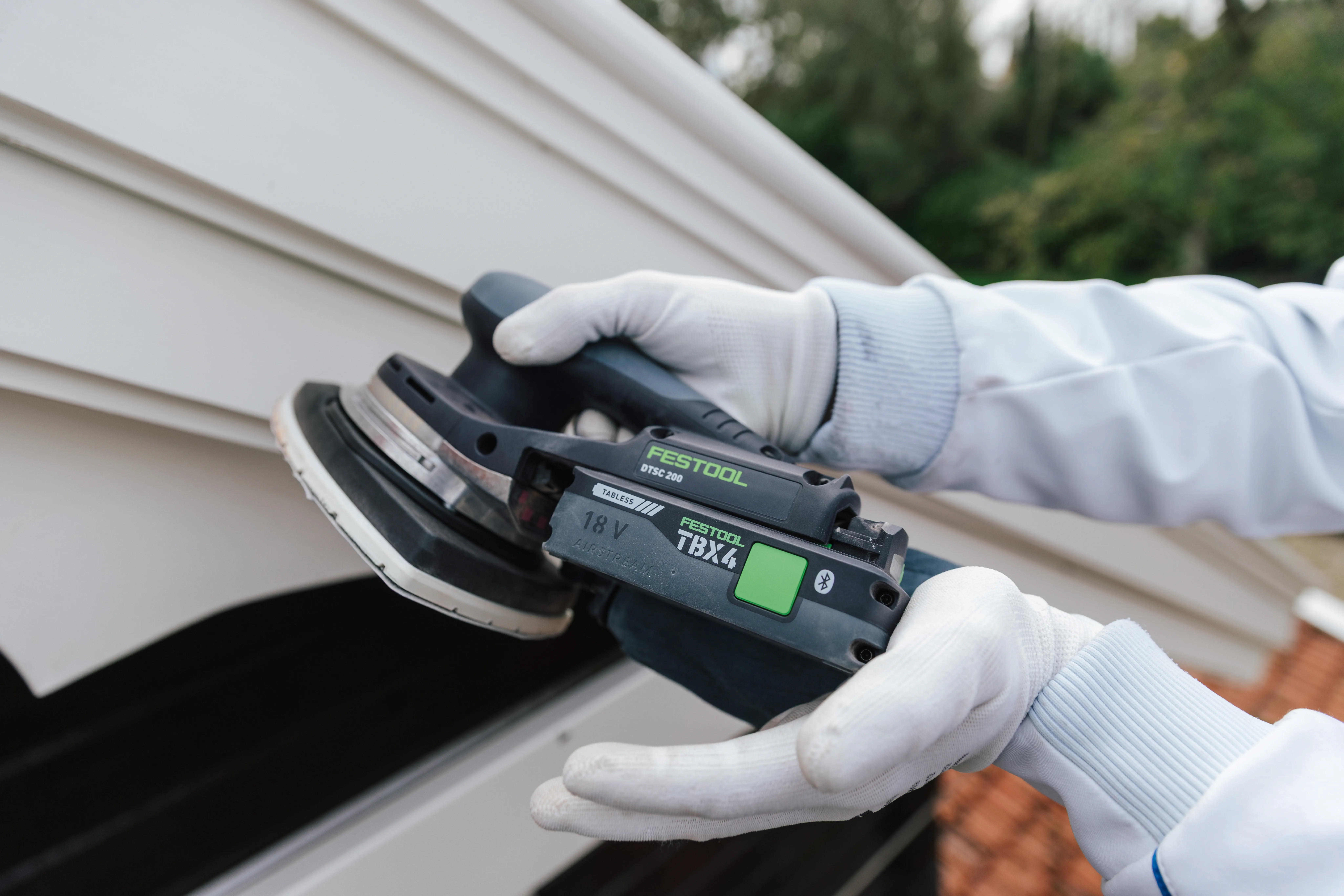 Luke heeft ingezien dat oppervlaktevoorbereiding geïnternaliseerd, cruciaal is voor schilderwerk. cruciaal voor schilderwerk. En dat is precies waar Festool schuurmachines gemaakt zijn. Luke waardeert het vooral dat Festool altijd een stap vooruit denkt. een stap vooruit denkt. "De DTSC 200 Deltaschuurmachine heeft me echt verrast. heeft me echt verrast. Het feit dat je het nieuwe delta schuurpapier drie keer kunt gebruiken is geweldig. De Lichtmodule is ook erg handig." A knikje van goedkeuring voor de nieuwe Tabless TBX 4 accu van hem. Vooral op de profiteert hij van het feit dat de accuschuurmachines langer lopen en nog sneller kunnen worden opgeladen. nog sneller kan worden opgeladen.