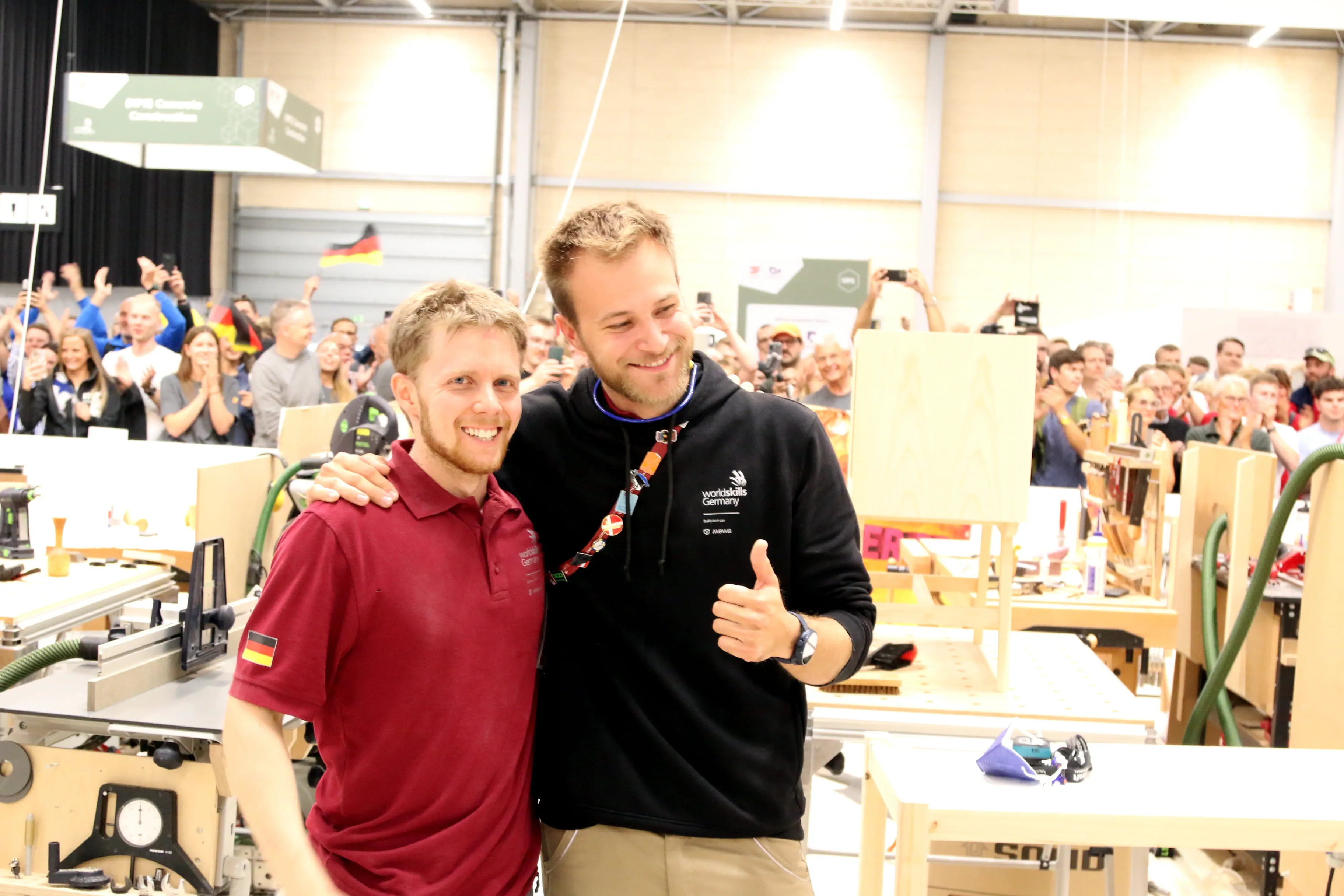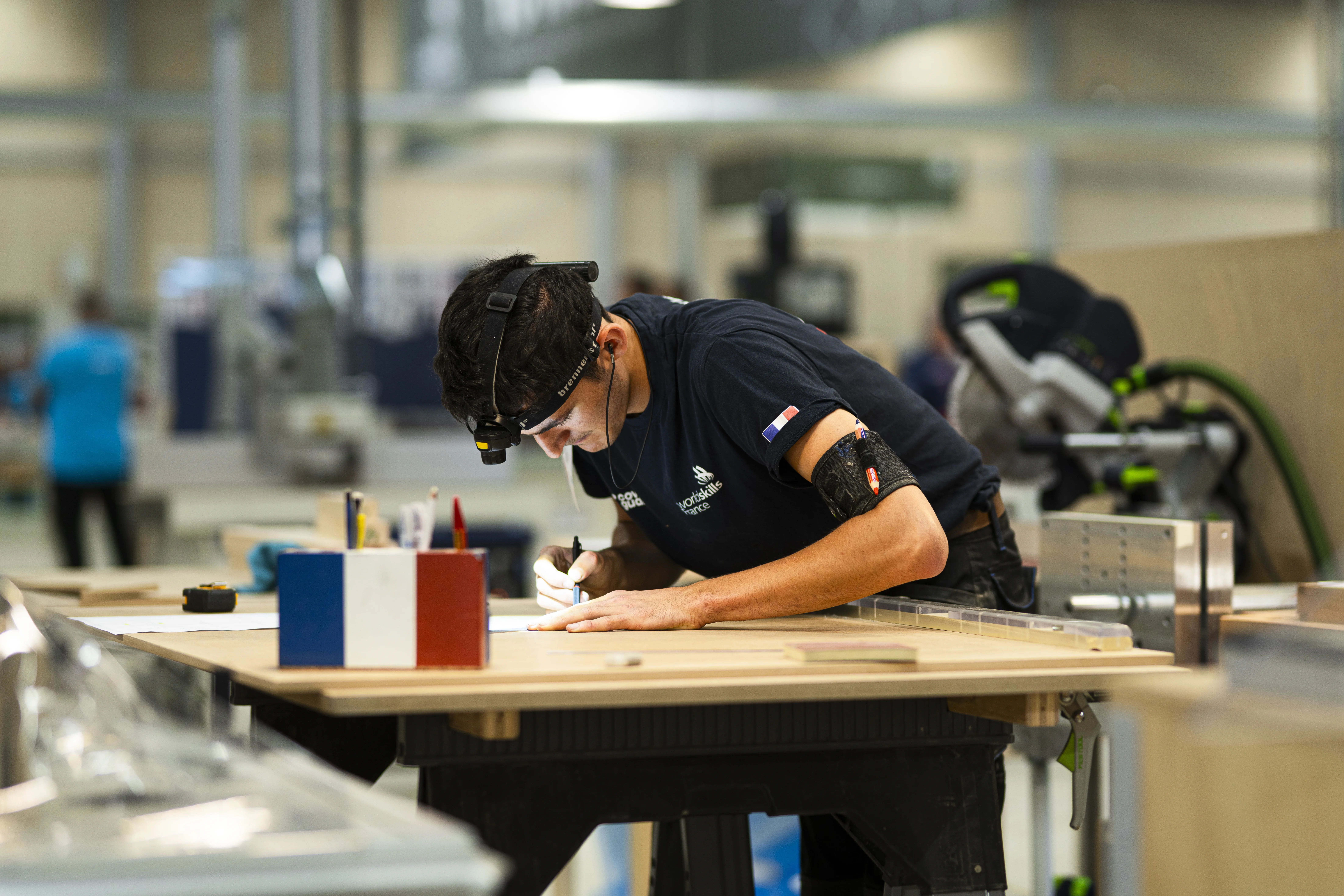 "Ik heb nog nooit zoveel spanning in de lucht gevoeld", vertelde een bezoeker ons, terwijl de Duitse timmerman Linus Großhardt, volledig ontspannen, 20 minuten voor de laatste bel zijn werk met zijn trainer inspecteerde, terwijl pure adrenaline de overhand had in de laatste minuten van de andere timmer-, bouw- en meubelmaakwedstrijden. Je kon letterlijk de hartslag voelen van de koortsachtig werkende deelnemers.