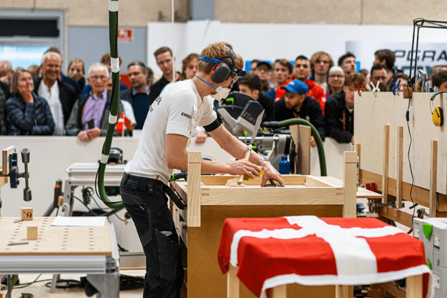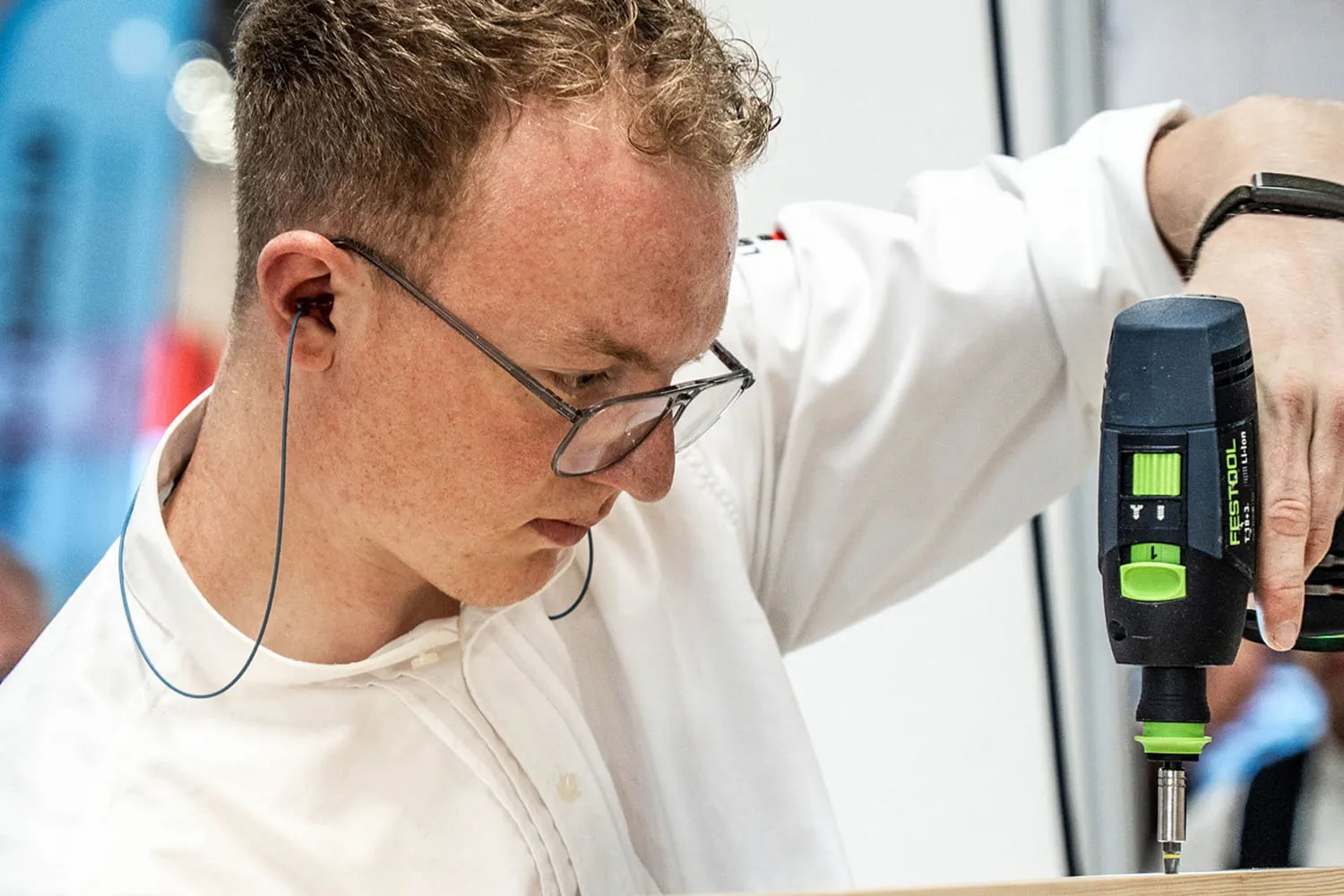 Wanneer de deuren van de wedstrijdhallen in Herning, Denemarken opengaan tijdens EuroSkills, wordt u meteen ondergedompeld in een andere wereld: Er hangt adrenaline in de lucht, de gezichten van de deelnemers stralen uiterste concentratie uit. Dit gaat gepaard met het ritmische gezoem van de machines en de geur van hout en zaagsel. Vakmanschap en talent zijn samengebald in slechts een paar meter, waarin de deelnemers zich in het zweet des aanschijns werken om zeer veeleisende projecten binnen een bepaalde tijd te voltooien. Ze hebben alleen hun elektrische gereedschap bij zich. Onmisbare helpers op weg naar het podium van de winnaar.