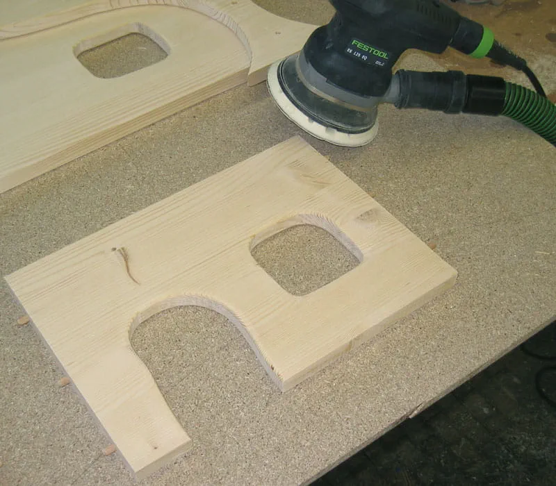 De afzonderlijke kanten schuren en met behulp van een bovenfrees of met de hand afronden. De vlakken met een excenterschuurmachine of met de hand schuren.