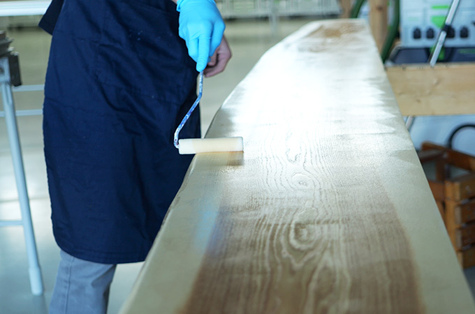 Bij houtsoorten zoals eiken is het verstandig om het oppervlak vóór het laatste schuurwerk te besproeien. Bevochtig hiervoor het oppervlak met een vochtige spons of doek. De houtvezels gaan staan en kunnen na het drogen met een laatste fijne schuurbewerking worden geëgaliseerd. Tijdens het tussenschuren na de eerste oppervlaktecoating worden deze vezels al doorgesneden en wordt het oppervlak nog gladder. Inweken is ook een groot voordeel bij het werken met beitsen.