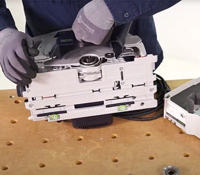 Het geleidingssysteem om te boren van Festool is in combinatie met een accuschroevendraaier of een elektrische machine geschikt om snel en recht boorgaten te boren.