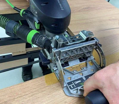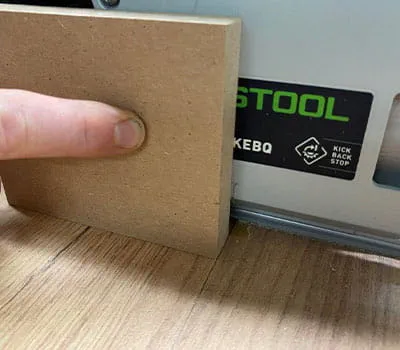 En l'occurrence, la fraise de 12 est idéale pour la fraiseuse. Bien sûr, il est aussi possible d'utiliser ici une défonceuse pour fraiser avec une parfaite précision les trous destinés aux charnières.