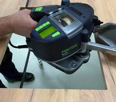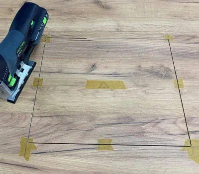 Nous insérons avec précaution la lame de scie sauteuse et procédons à la coupe de finition dans chaque angle. Nous passerons ensuite à la préparation des chants et de l'encolleuse de chants. Ici aussi, veillez à consulter la notice d'utilisation. Cette opération est toutefois uniquement nécessaire en cas d'utilisation d'un matériau support en aggloméré, par exemple. Dans le cas des panneaux de contreplaqué multiplex, vous pouvez passer les opérations qui suivent (et reprendre à l'étape 15).
