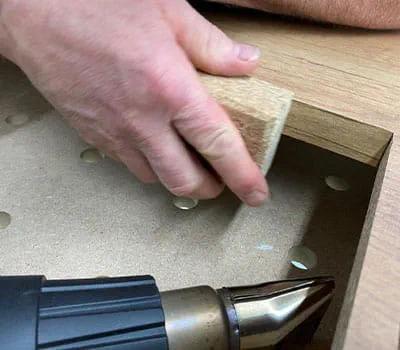 Encoller les chants intérieurs de la table et le volet d'une fine bande de chant