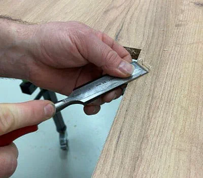 Retirer avec précaution les parties saillantes dans les angles avec un ciseau à bois bien affûté
