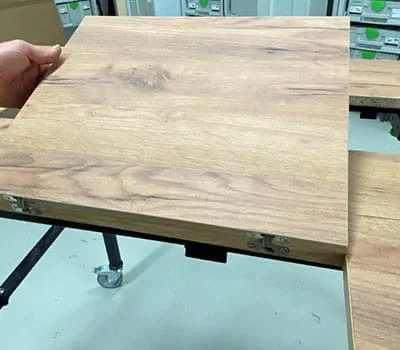 - Table/plateau, par ex. panneau d'aggloméré contreplaqué (prévoir une bande de chant en supplément/les chants doivent être encollés)